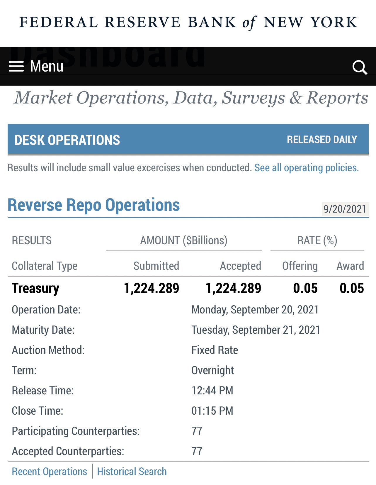 fed reported over 1,224 trillion dollars in reverse repo operations today. This sets up a record for the largest reverse repo operation in history. 😜