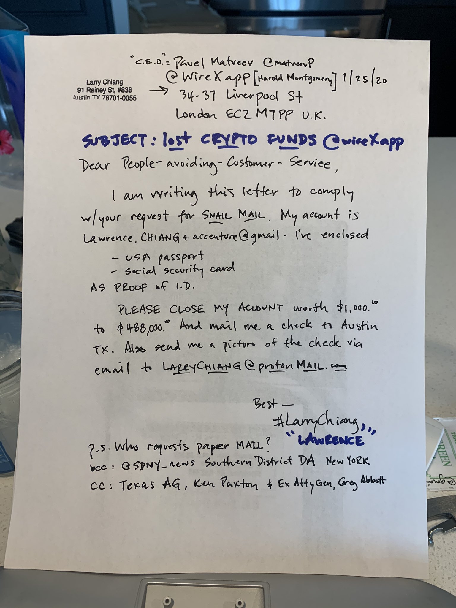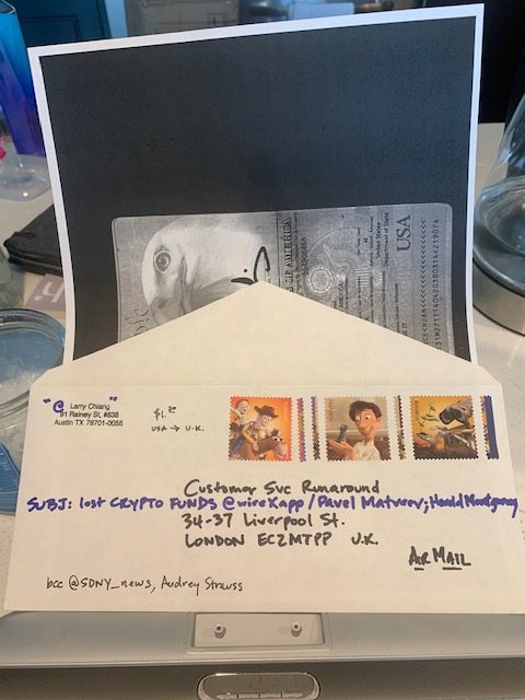But alas, I really want my $1,000 – $488,000 in crypto back so I drafted a letter