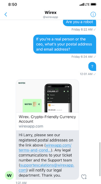 Emails, Twitter DM’s, support ticket numbers inside ZenDesk, My Lost Crypto, a Request for Postal Mail, and a New MD in America Named Harold Montgomery. They all do not help. This England startup WireX has lost all of my crypto.