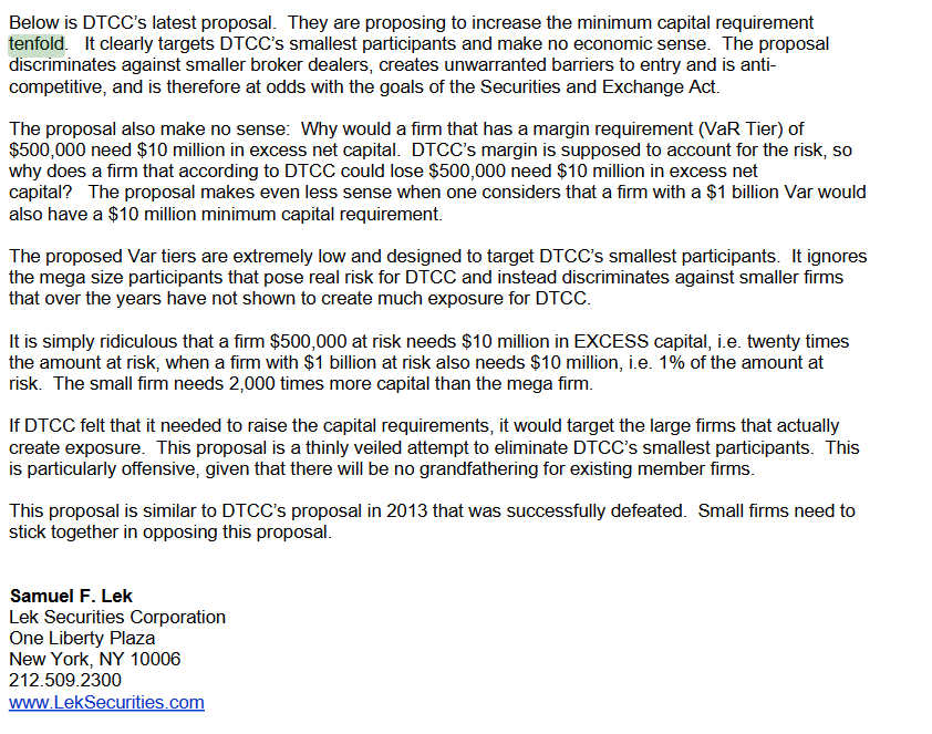 Capital requirements proposed to be enhanced 1000% and the NSCC/FICC/DTC feel the burden of competition on small banks, broker dealers, etc. is appropriate, and furthers the purpose of the SEC Act. 1,293 pages long.