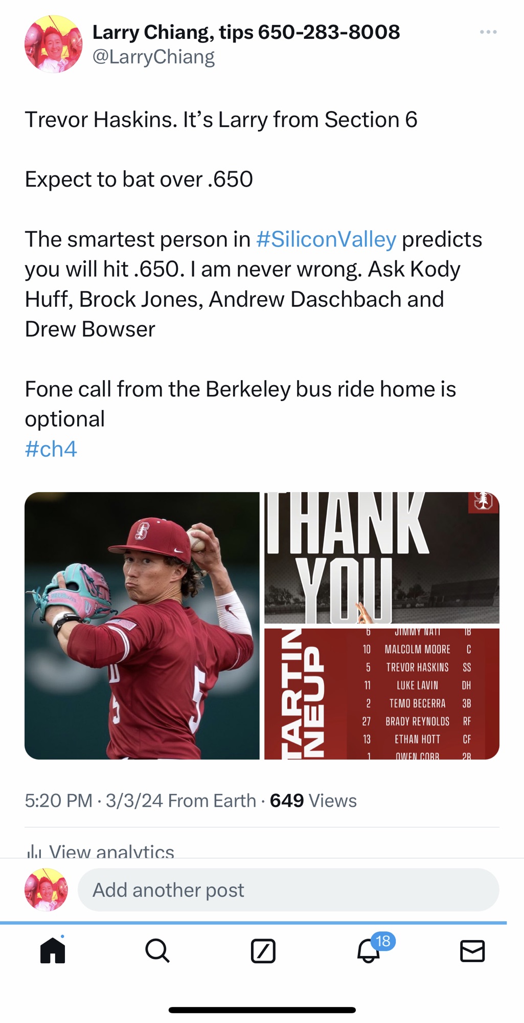 Post by Stanford Baseball on X