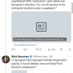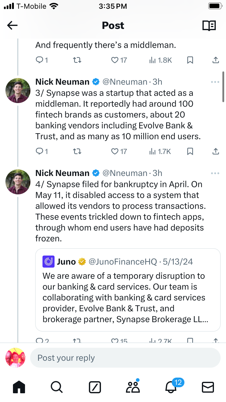 2/ Today, many consumers use fintech apps to manage money, but these apps aren’t always banks. Often, apps partner with other vendors with banking relationships. The app provides a frontend while a bank provides accounts and FDIC protection.