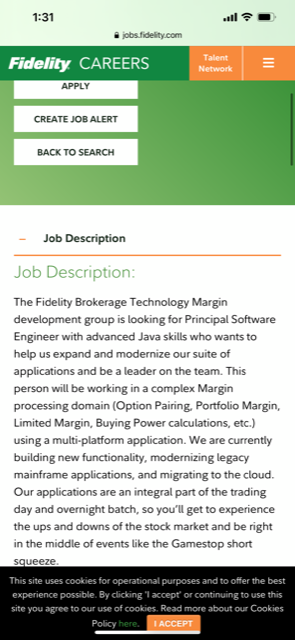 The Fidelity Brokerage Technology Margin development group is looking for Principal Software Engineer with advanced Java skills who wants to help us expand and modernize our suite of applications and be a leader on the team.